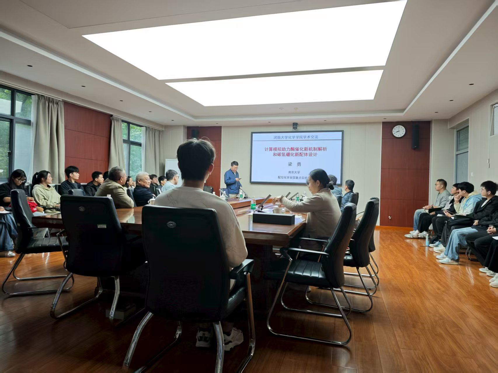 2025年9月22日,应轻金属材料防护与安全储能河南省重点实验室常务副主任王丽教授邀请,南京大学教授、国家青年科学基金A类获得者梁勇来我室交流访问,并在河南大学化学与分子科学学院220室作题为“计算机模拟助力酶催化新机制解析和碳氢硼化新配体设计”的学术报告。报告由王丽教授主持,实验室全体师生参加了此次学术交流。